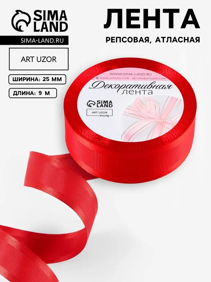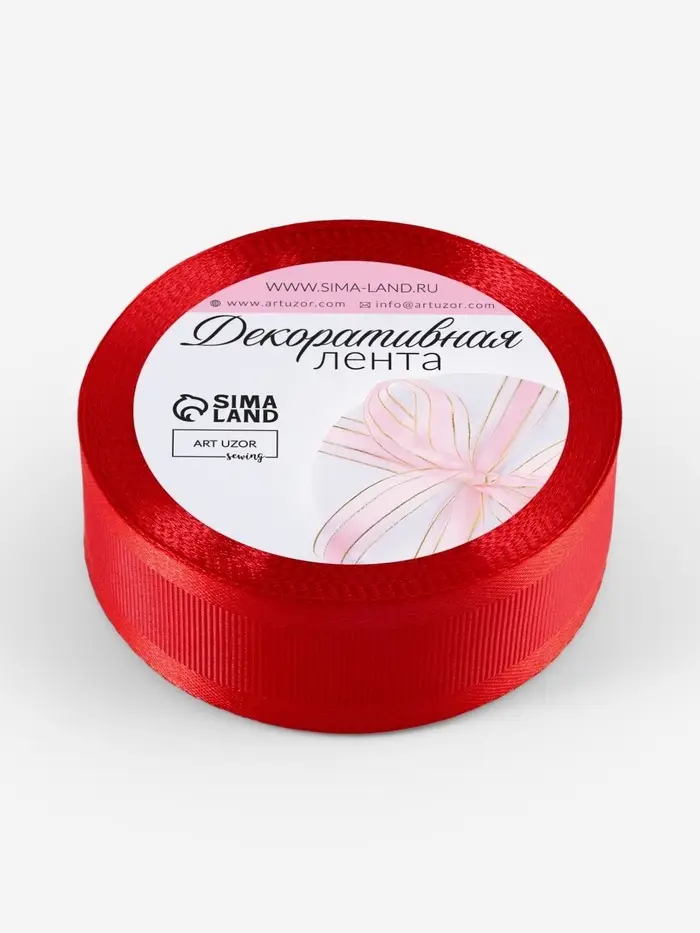 Лента декоративная, репсовая/атласная, 25 мм, 9.1 ± 0.5 м, красная №26