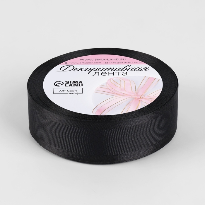 Лента декоративная, репсовая/атласная, 25 мм, 9,1 ± 0,5 м, чёрная №39