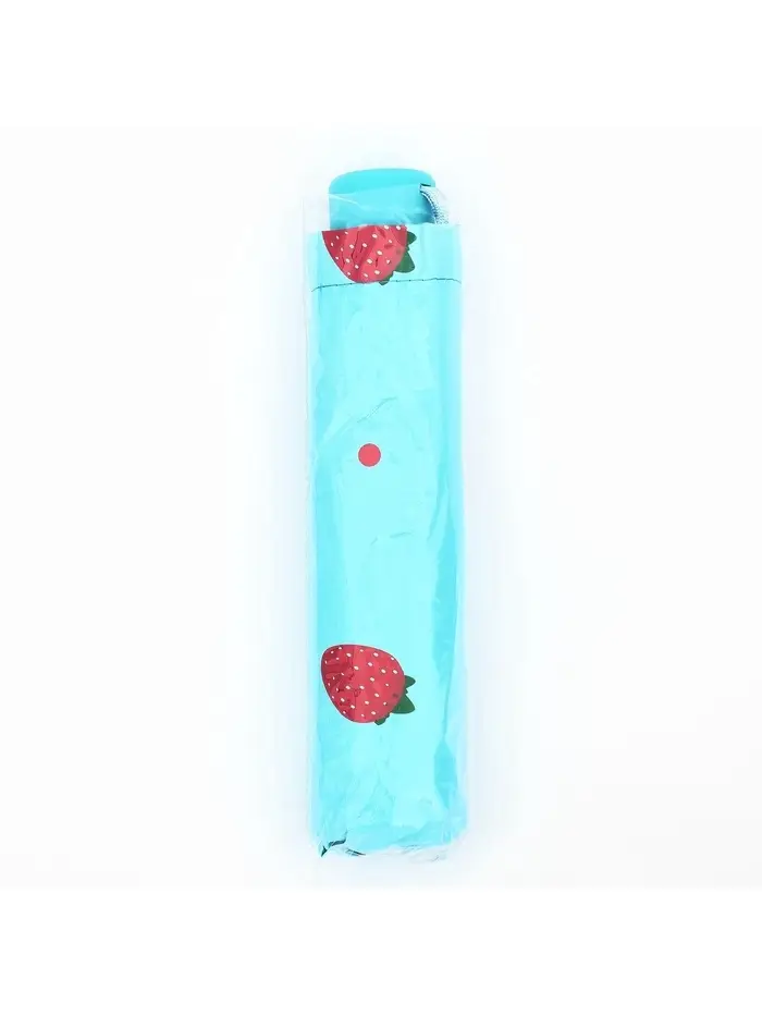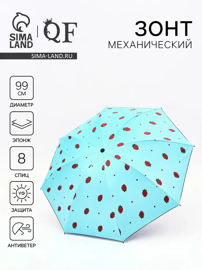 Зонт механический «Ягоды», эпонж, 4 сложения, 8 спиц, R=49/55 см, d=98 см, голубой