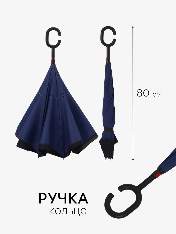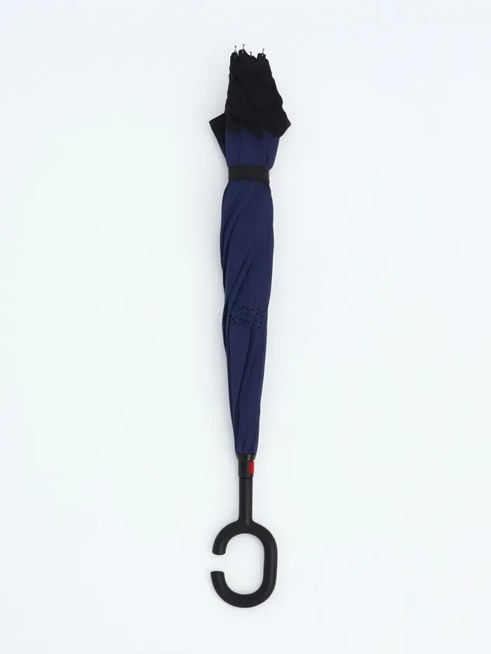 Зонт - наоборот «Однотон», механический, 8 спиц, R=53/61 см, d=106 см, чёрный, синий