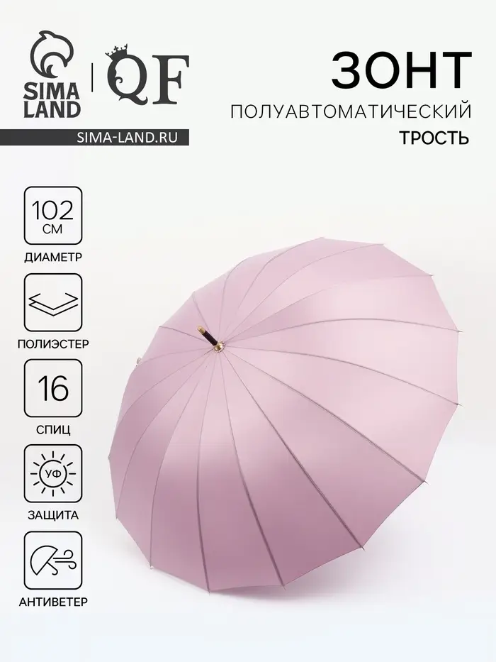 Зонт полуавтоматический «Однотон», 16 спиц, R=51/60 см, d=102 см, розовый