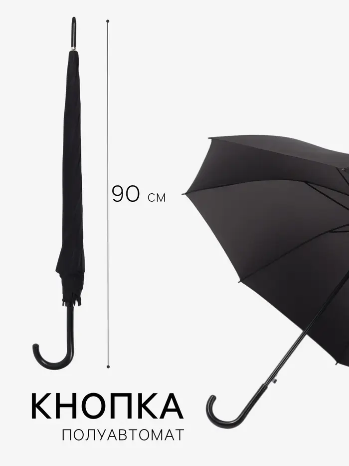 Зонт - трость полуавтоматический «Однотон», 8 спиц, R=56/67 см, d=112 см, чёрный