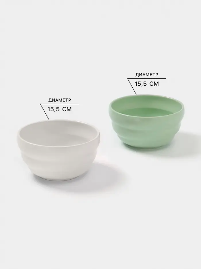 Салатники Доляна «Зефир», 700 мл, d=15.5 см, набор 2 шт., керамика, белые, зелёные