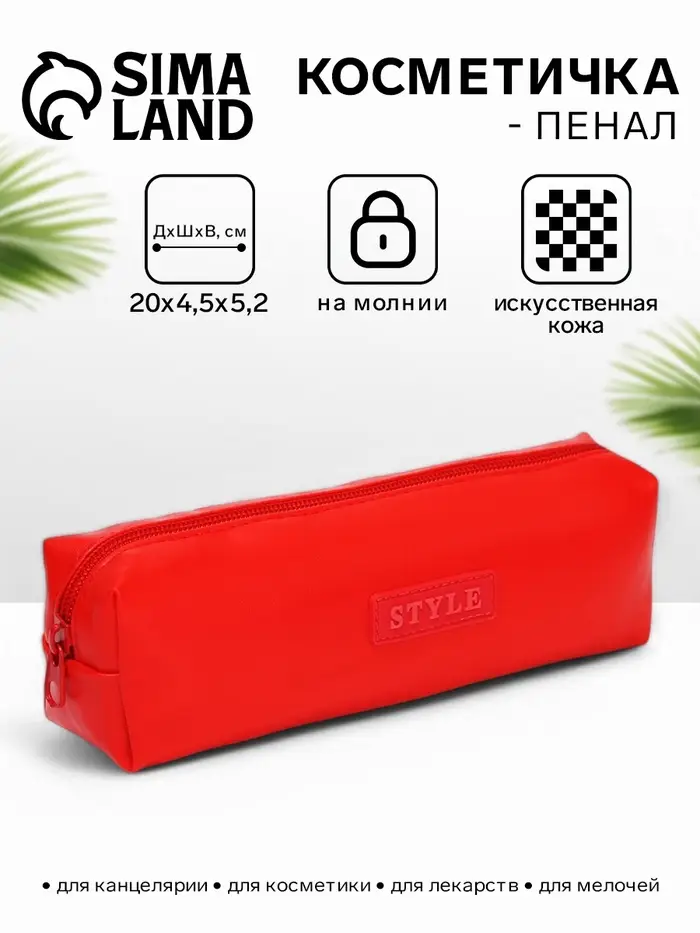 Косметичка - пенал на молнии, средний размер, с ярким рисунком, красная