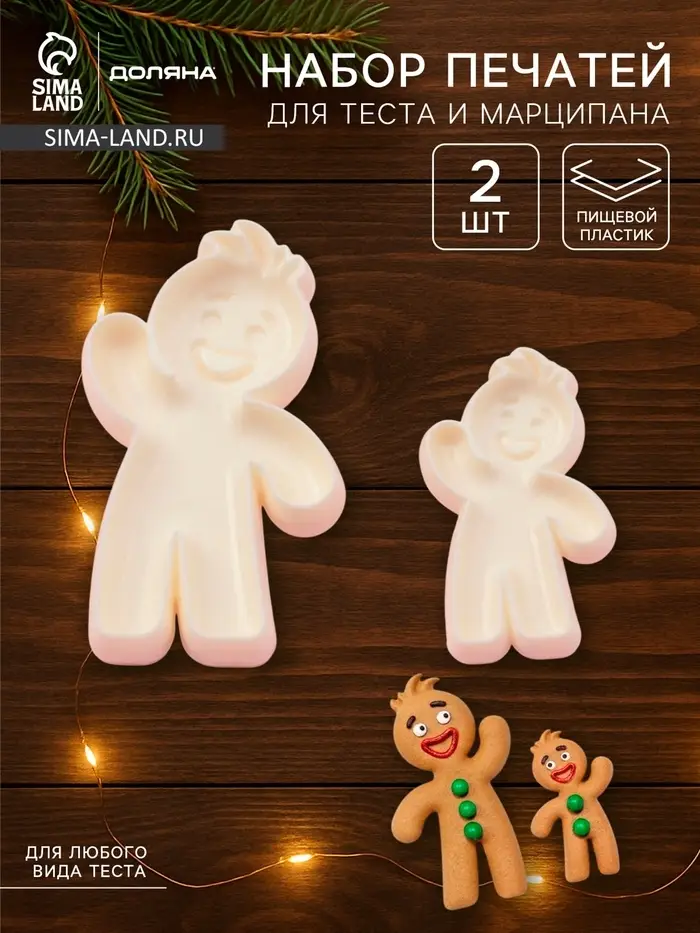 Печати для теста и мастики новогодние Доляна «Пряничный человек», набор 2 шт., пластик, молочные