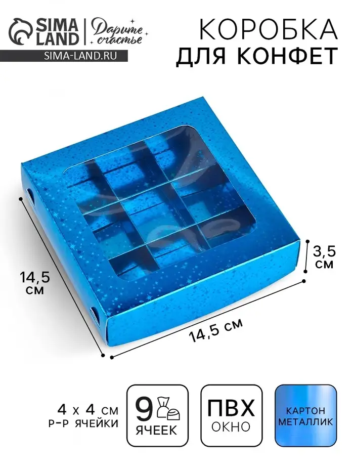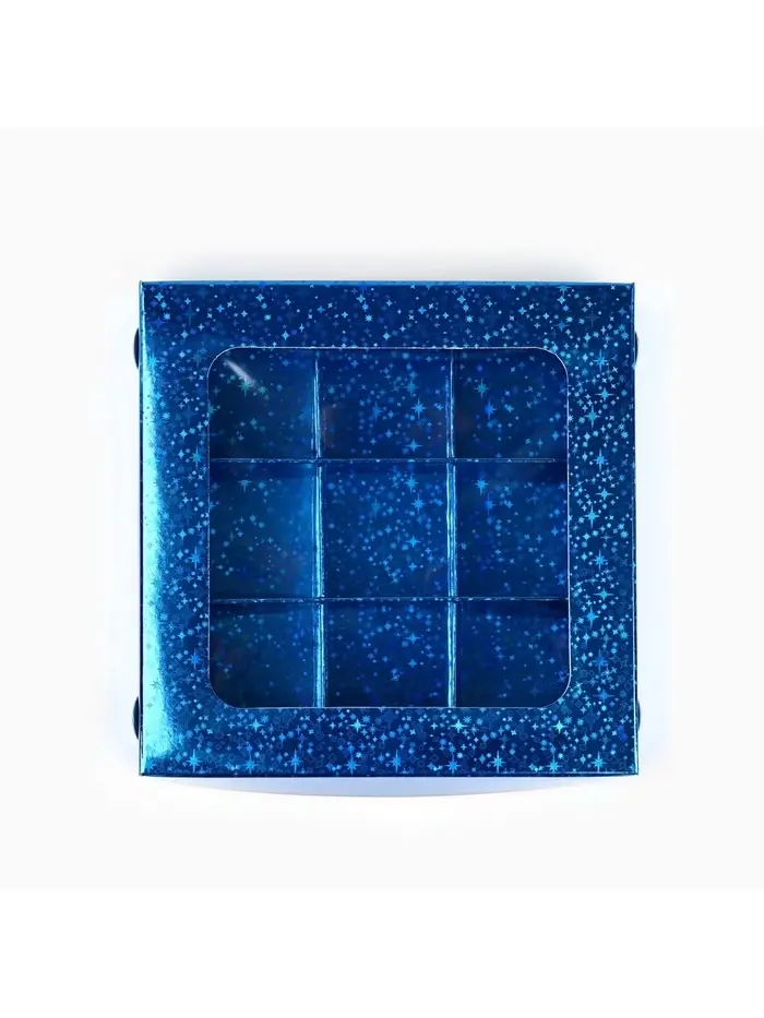 Коробка для конфет «Синие звёздочки», 14.5×14.5×3.5 см