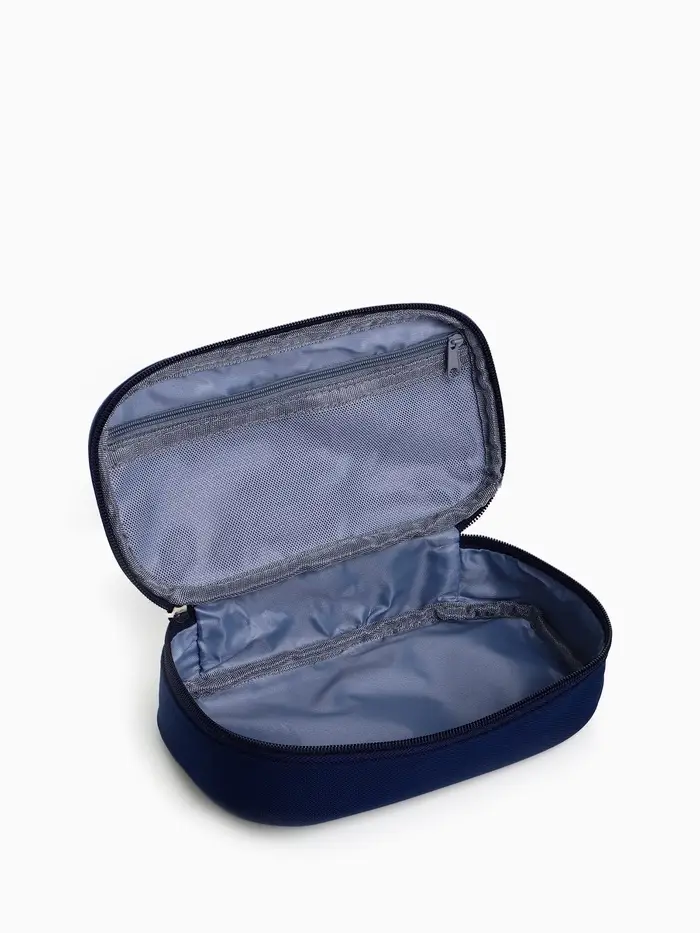 Эта синяя косметичка на молнии — ваш надёжный союзник в порядке. Она аккуратно разместит всё необходимое, от кистей до любимой помады, и станет стильным акцентом в сумке или на туалетном столике.