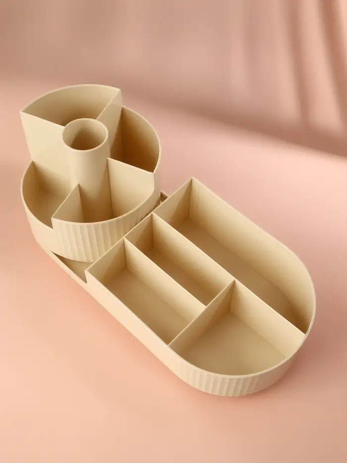 - Эргономичность: 9 секций позволяют разместить различные предметы — от кистей для макияжа до флаконов с духами, обеспечивая четкую структуризацию пространства.