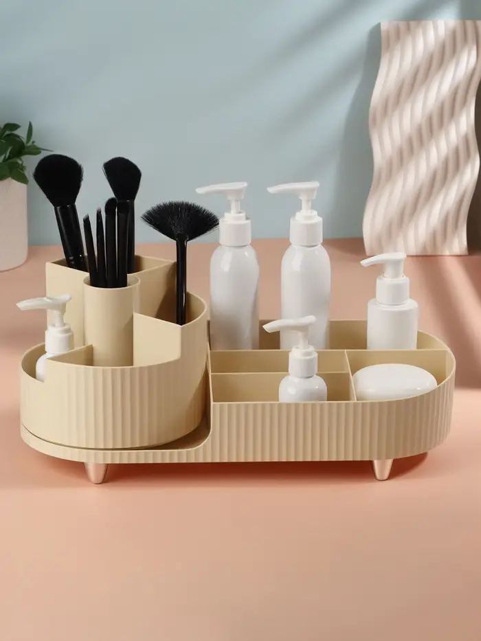 Представляем вашему вниманию стильное решение для создания идеального порядка на вашем туалетном столике — вращающийся органайзер с 9 секциями. Этот аксессуар не только украсит любое пространство, но и поможет организовать хранение косметики с максимальным комфортом.