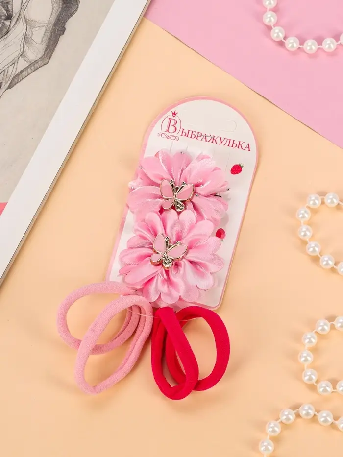 Набор для волос Выбражулька «Кокетка», 4 резинки 4 см, 2 зажима 6 см, нежность бабочка, розовый