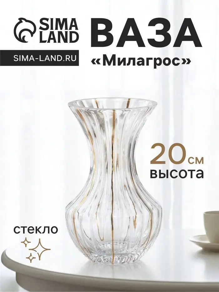- Элегантный вид: стеклянное исполнение и утончённые линии фасонов придают вазе стильный и современный вид.