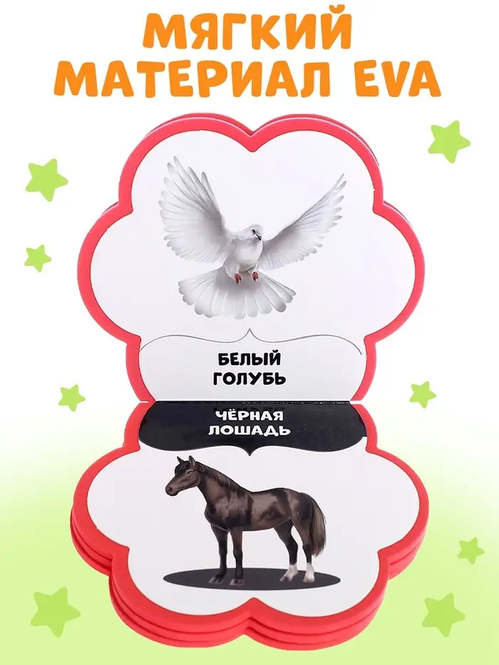 Мягкая книга сделана из приятного на ощупь пористого материала EVA. На каждой странице приклеены яркие иллюстрации с милыми зверятами, которые понравятся малышу.