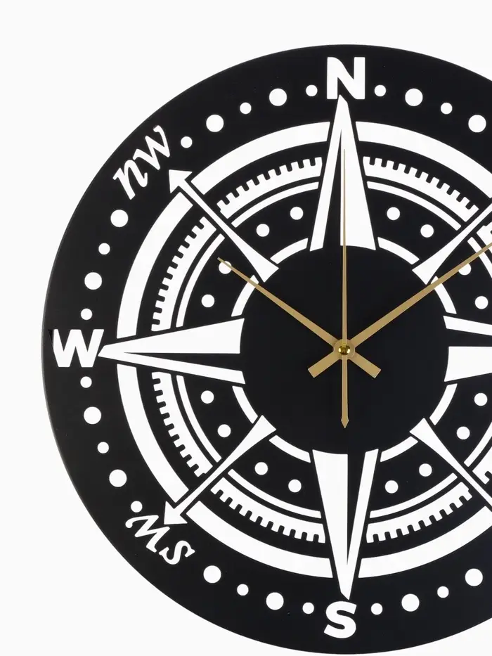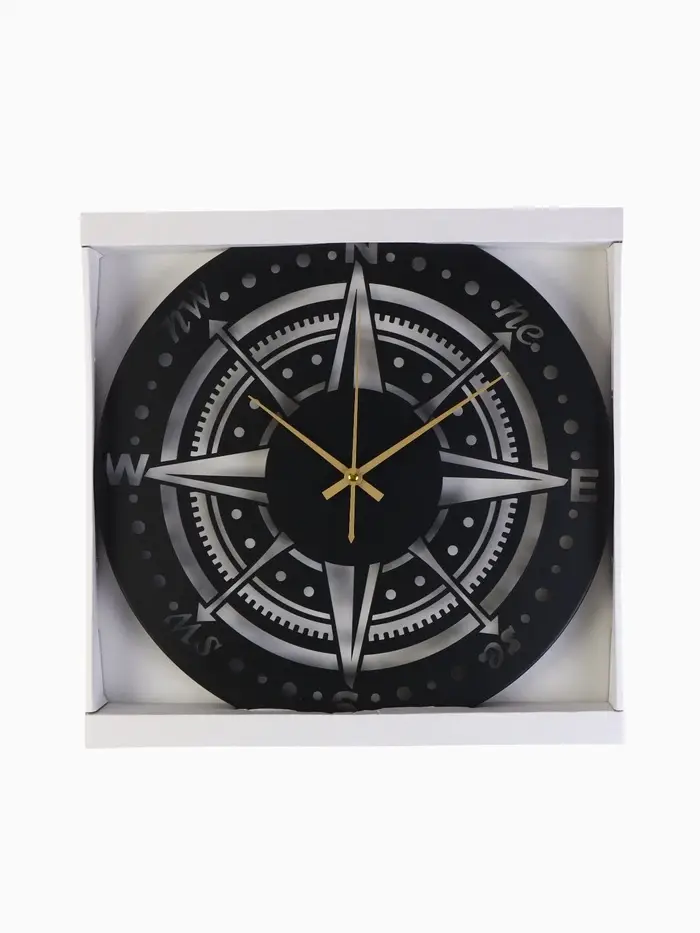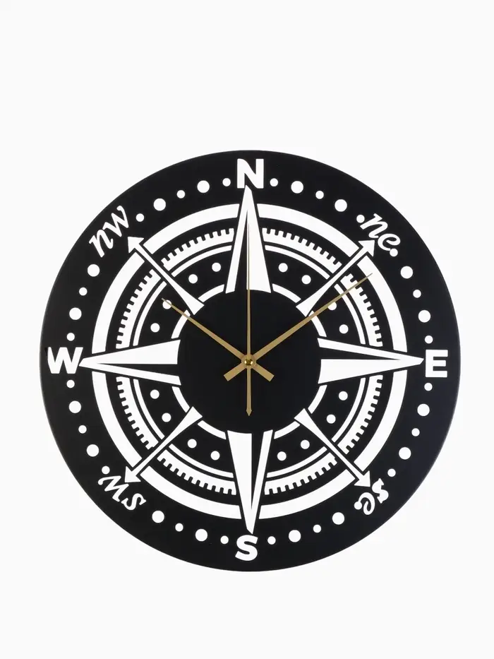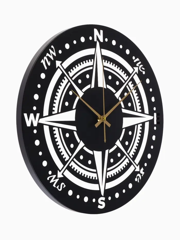 Часы «Компас» с чёрным корпусом прекрасно подойдут для гостиной, рабочего кабинета или прихожей. Плавный ход стрелок обеспечивает комфортное ориентирование во времени без лишнего шума.