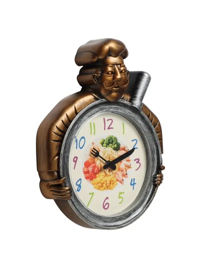 Часы настенные интерьерные «Шеф», серия: Кухня, бесшумные, плавный ход, 29.5×23 см, d=16.5 см, медные, серебристые