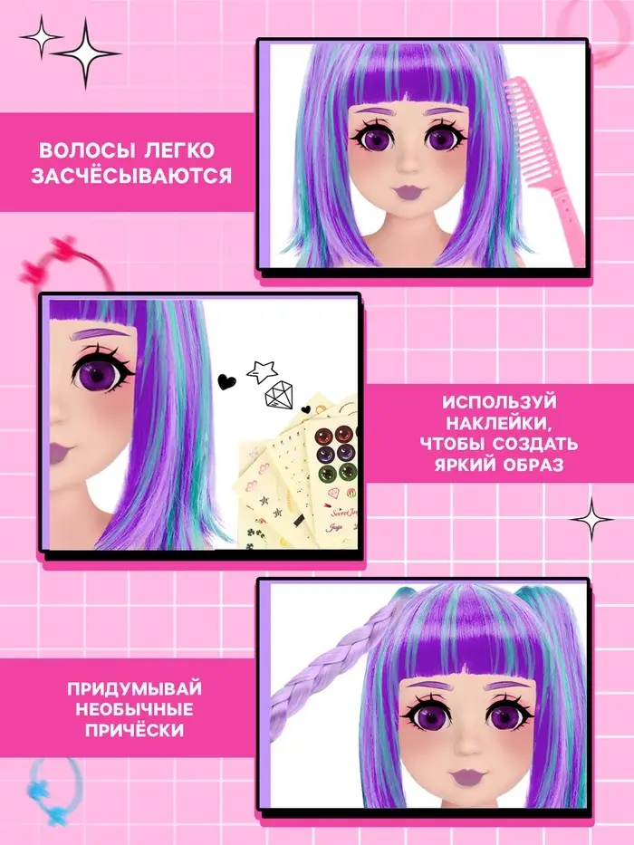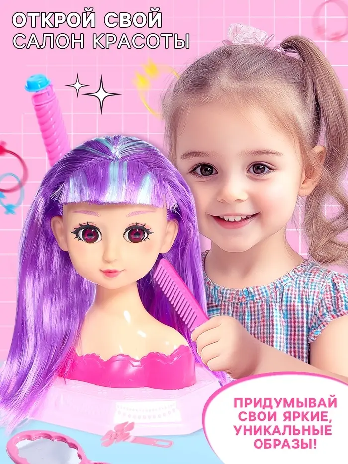 Девочки могут экспериментировать с причёсками, придумывать новые стили и осваивать основы ухода за волосами. Комплект подойдёт как для самостоятельной игры, так и для развлечений в компании подруг.
