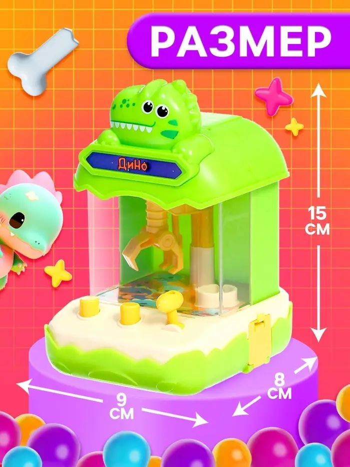 Автомат «Дино» — это уменьшенная копия настоящего автомата для конфет, которая принесёт радость как детям, так и взрослым.