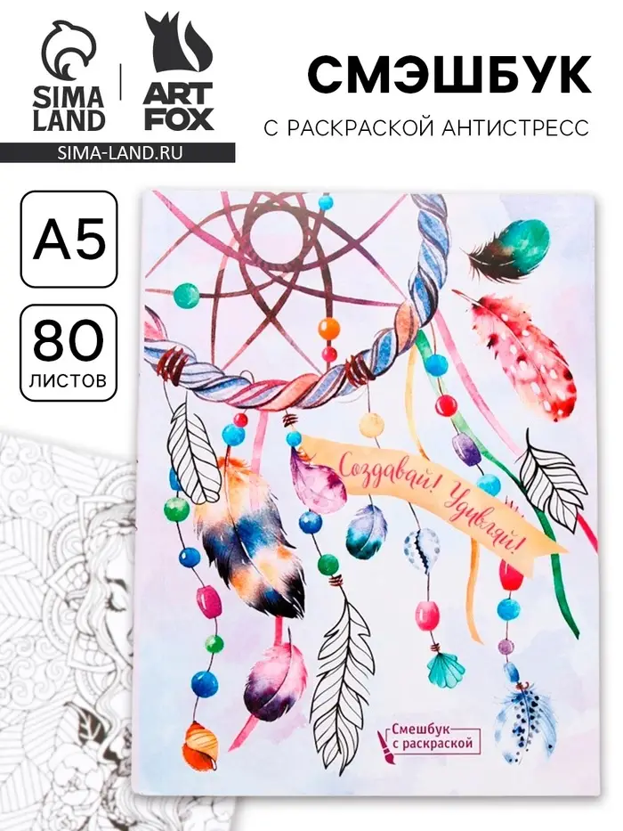 Смэшбук с раскраской антистресс А5, 80 л. «Создавай! Удивляй!»