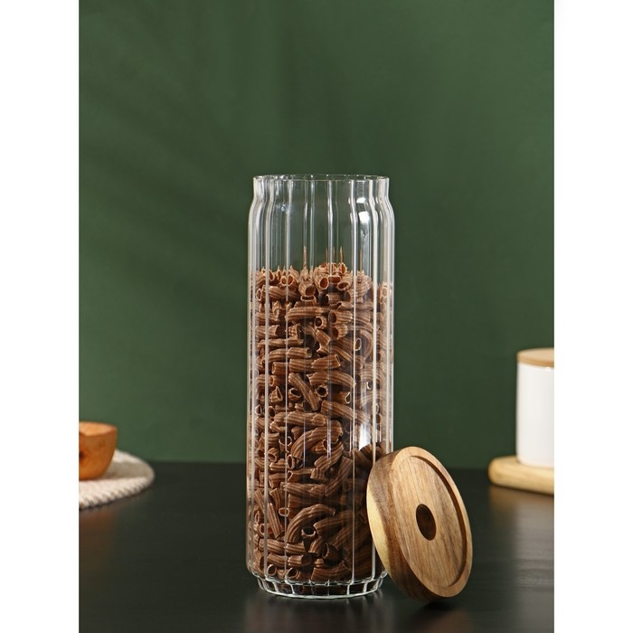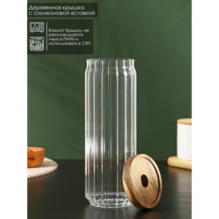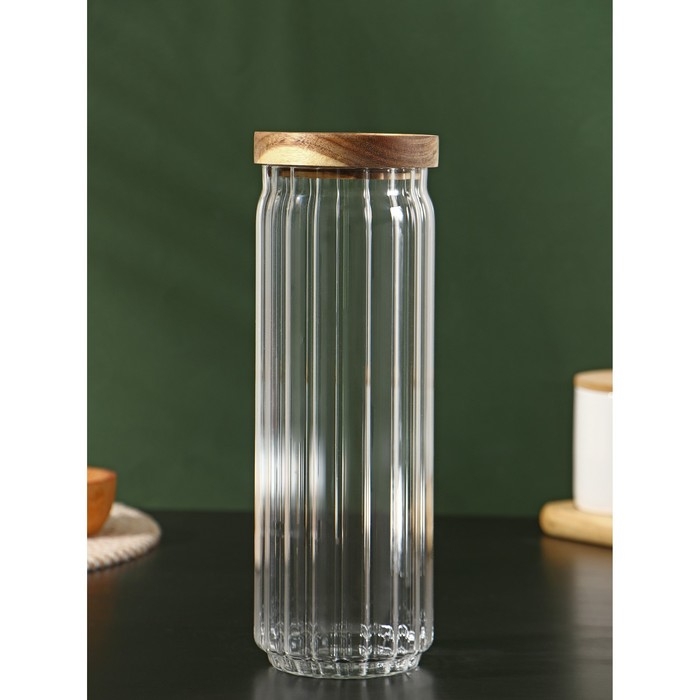 Банка стеклянная для сыпучих продуктов с деревянной крышкой «Дафна», 1,3 л, 9×26 см