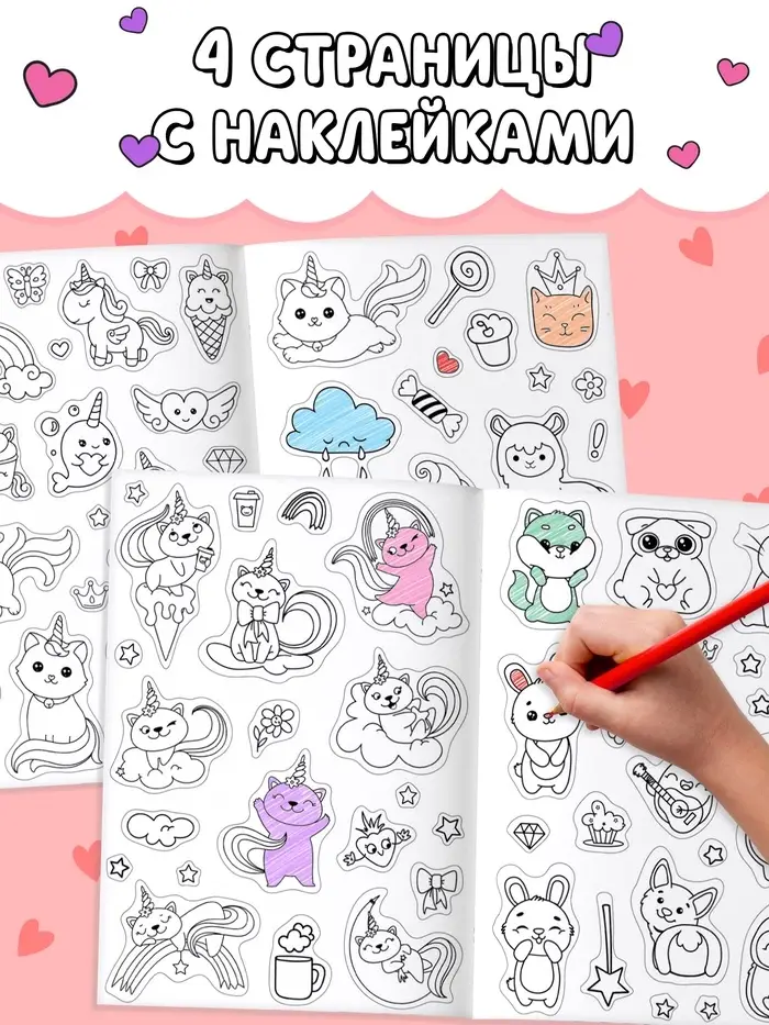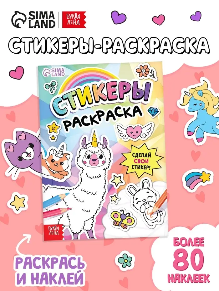 - Внутри вы найдёте более 80 одноразовых стикеров (без ламинации, можно раскрашивать).