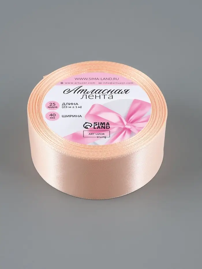 Кремово-розовая атласная лента шириной 40 мм и длиной около 23 метров — универсальный материал для рукоделия и оформления. Ее мягкий оттенок и гладкая поверхность делают ее подходящей для создания свадебных украшений, подарочной упаковки, декораций и аксессуаров. Лента легко поддается обработке, что позволяет реализовать разнообразные идеи — от бантиков и цветов до интерьерных деталей.