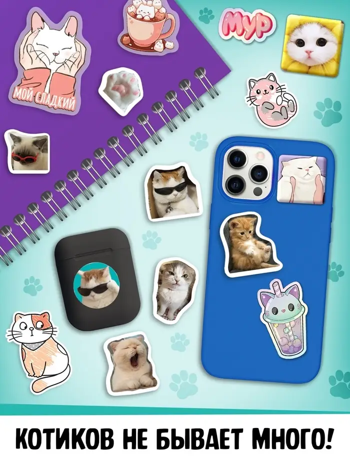 - 250 мемных наклеек с котиками — для весёлого настроения и оригинальных подарков.