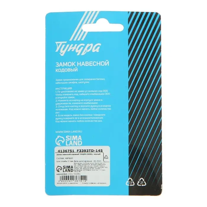 Безопасность и уверенность: Это кодовый замок станет залогом вашей уверенности в сохранности имущества. Простота настройки и использования позволяет сосредоточиться на важных вещах, не беспокоясь о мелочах. Сделайте свой выбор в пользу безопасности и стиля с замком от ТУНДРА!