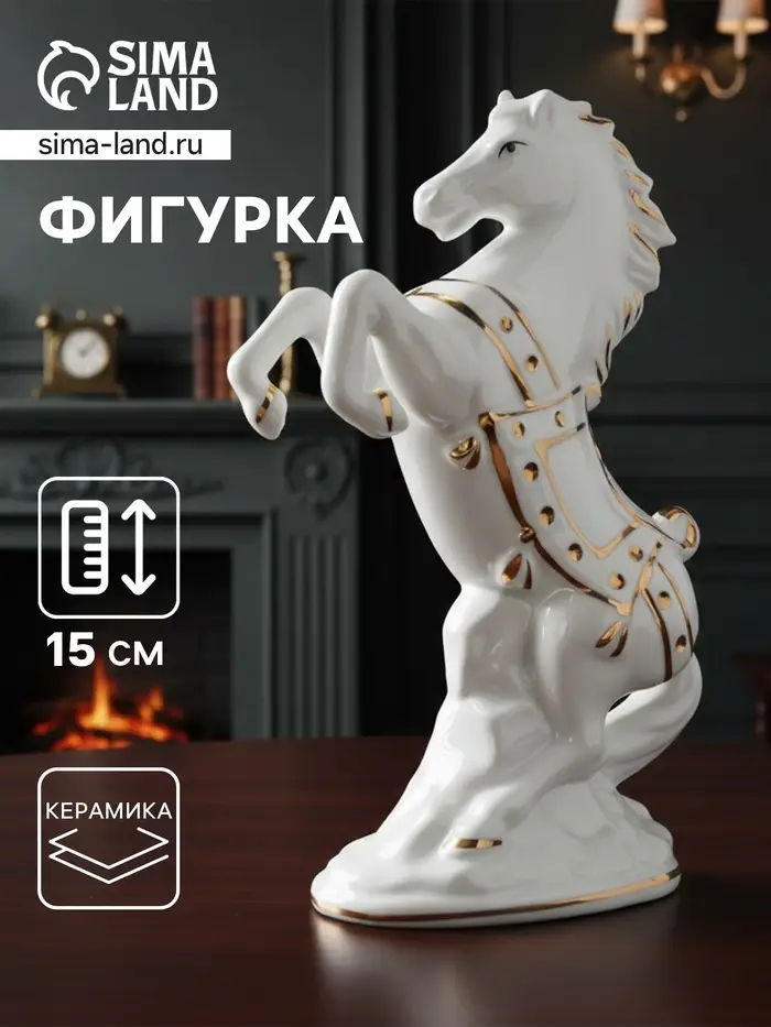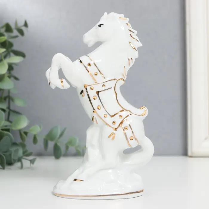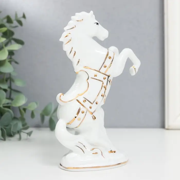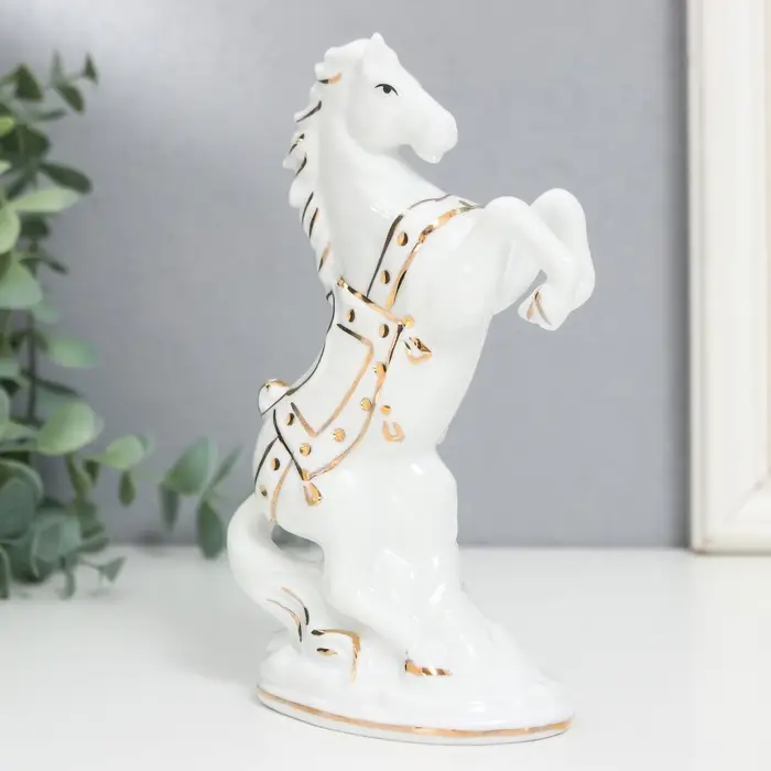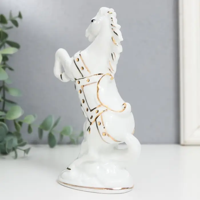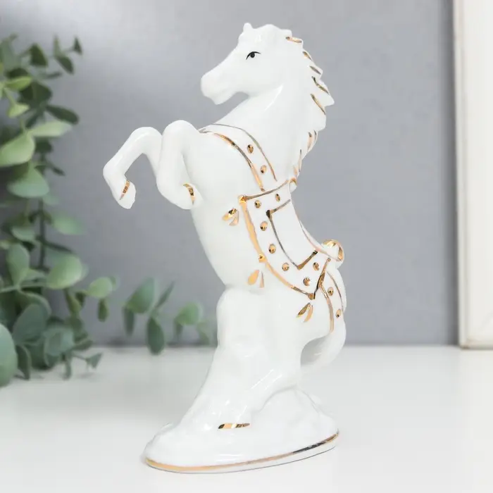 Фигурка керамика «Белый конь на дыбах», с золотом, 15 см