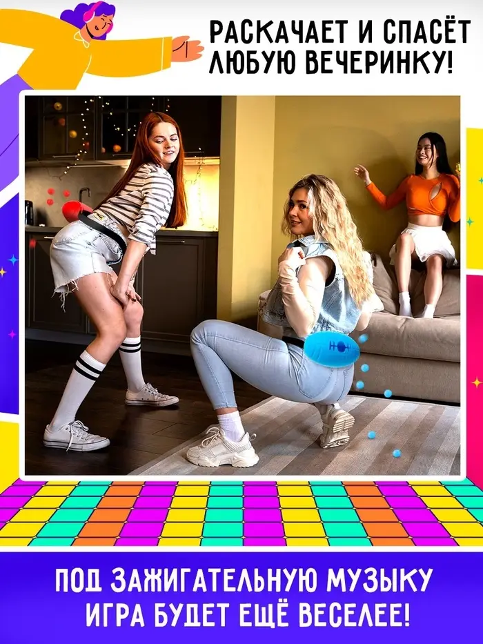- Побеждает команда, которой удалось вытрясти больше всех шариков из контейнеров. Проигравшим игрокам придётся как следует потрясти попой в течение минуты, чтобы не продуть в следующей игре!