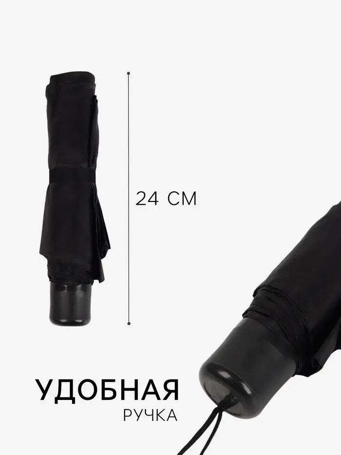 Зонт механический, Dark afternoon, 3 сложения, 8 спиц, R=48/55 см, d=96 см, чёрный