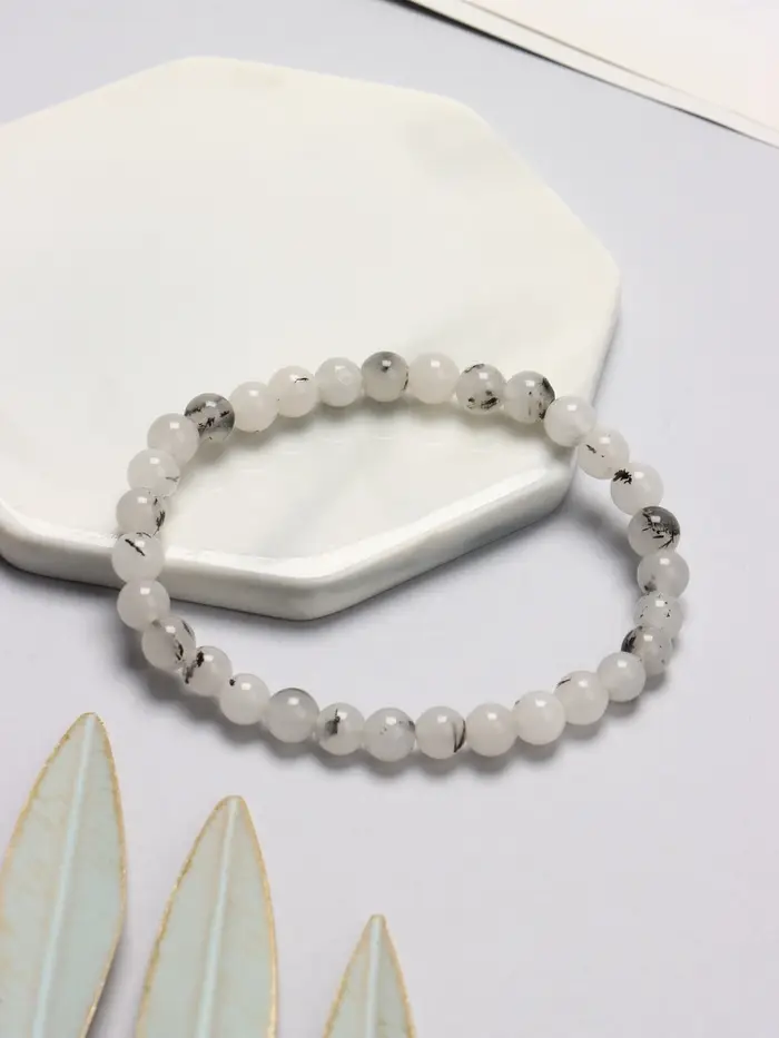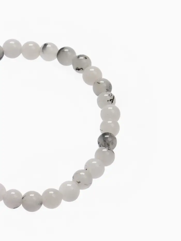 С длиной 5 см и мягкой основой из силикона, этот аксессуар с номером шара 6 предоставляет комфорт и удобство в ношении. Браслет выполнен из искусственного камня, который придаёт ему уникальность и позволяет легко комбинировать его с другими украшениями. Нет никакой фурнитуры — это делает дизайн ещё более минималистичным и стильным.