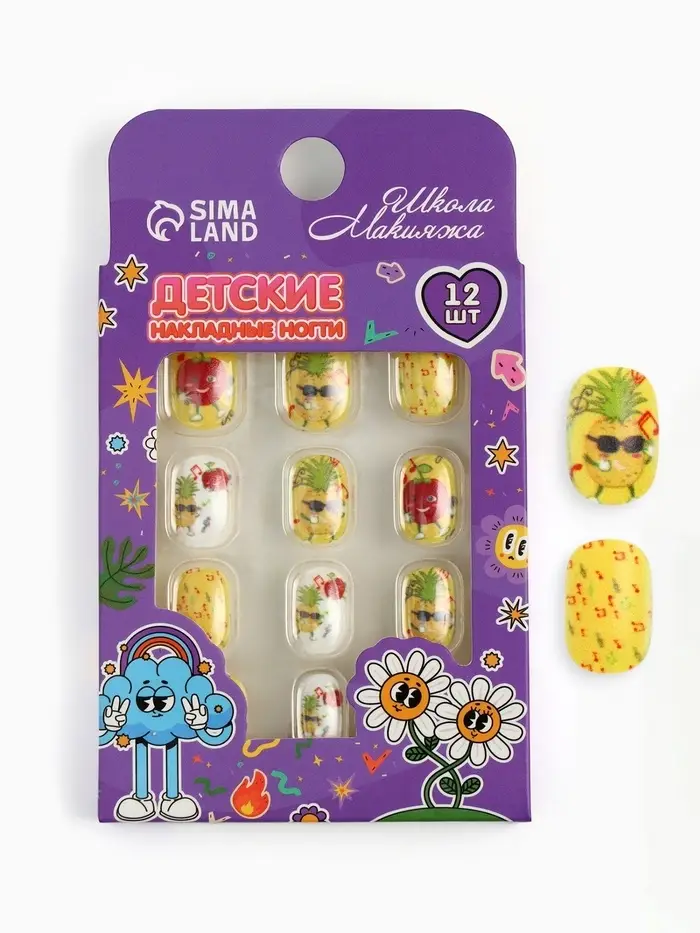 Детские накладные ногти «Ананас в теме», 12 шт.
