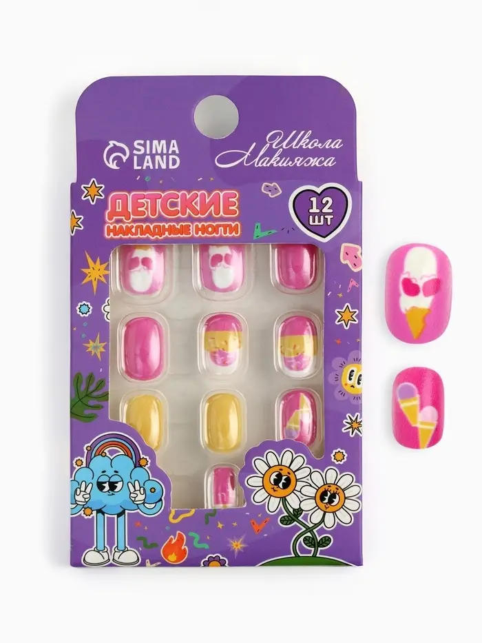 Детские накладные ногти «Сладкие пирожные», 12 шт.