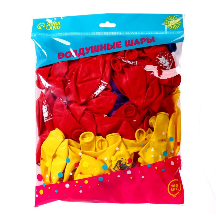 Воздушный шар латексный 12" «С днём рождения», 100 шт., МИКС