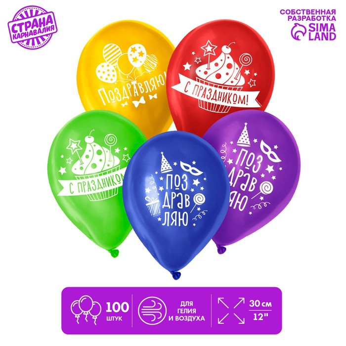 Воздушный шар латексный 12" «Поздравляю», пастель, 100 шт., МИКС