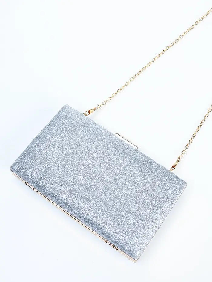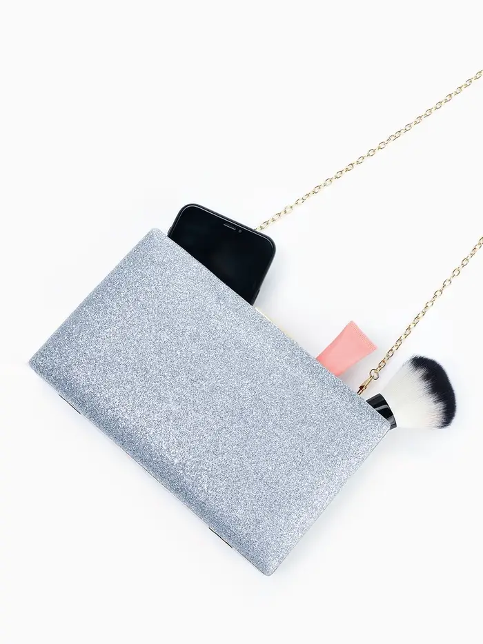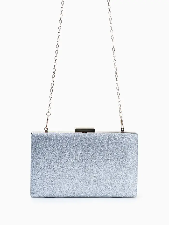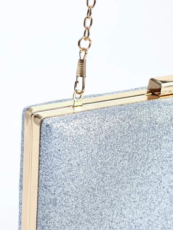 Сумка-клатч вечерняя на магните, на серебристой цепочке, блестящая, серебристая