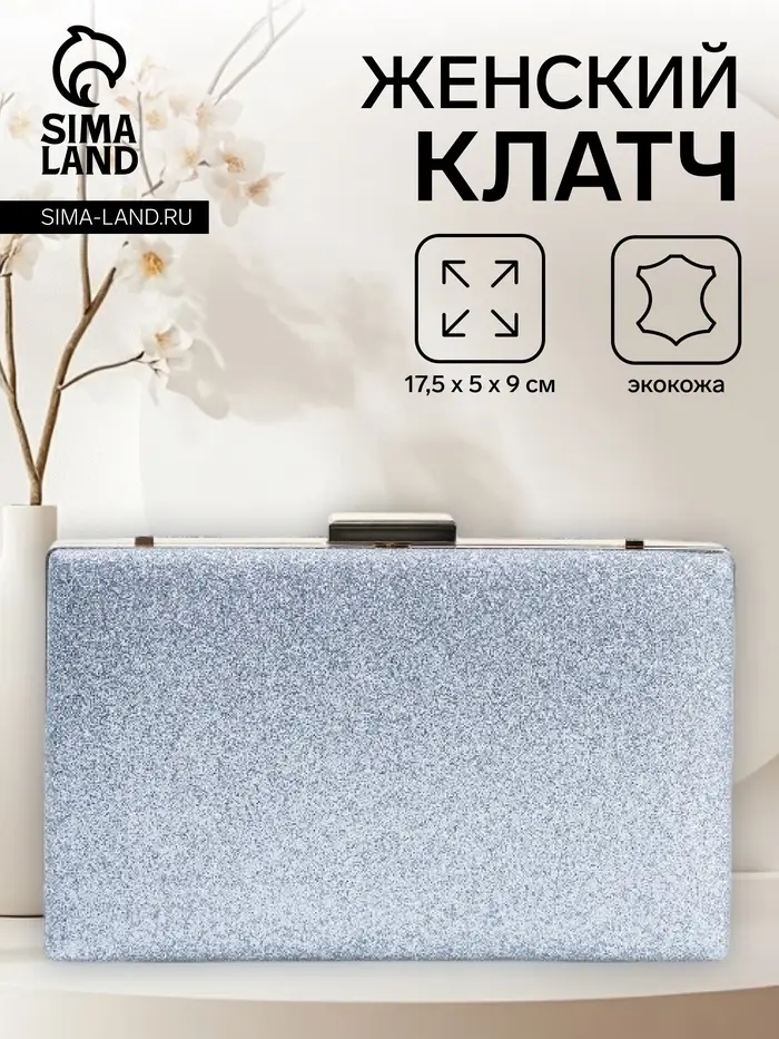 - Роскошный дизайн: Искусственная кожа серебристого оттенка гармонично сочетается с золотистой фурнитурой. Однотонная текстура добавляет выразительности вашему образу, в то время как фермуар обеспечивает надежное закрытие.