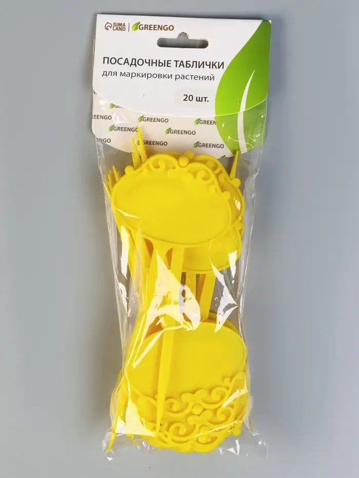 Таблички садовые для маркировки, фигурные, 15 см, набор 20 шт., пластик, жёлтые, Greengo