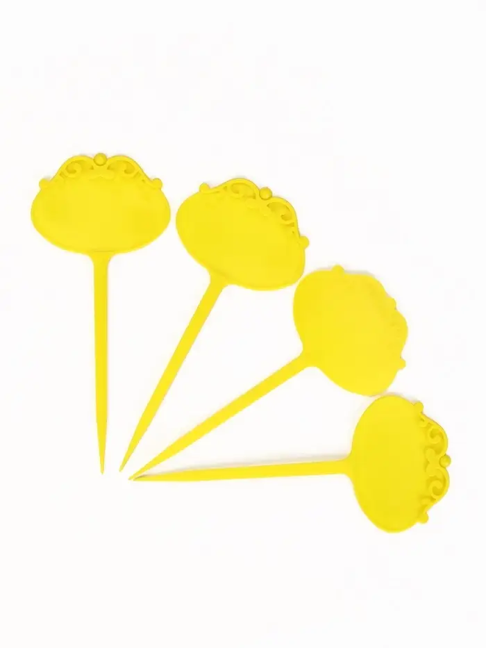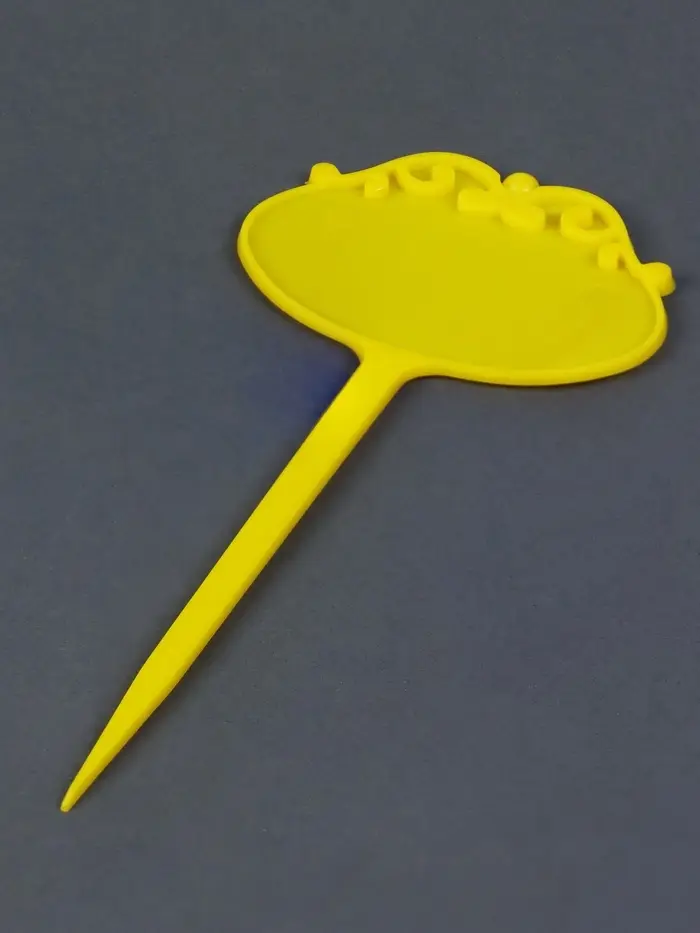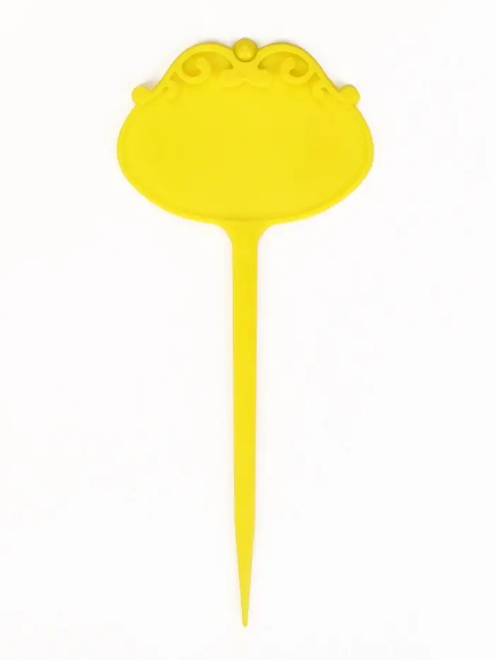 - Эстетичный дизайн: фигурная форма и жёлтый цвет делают эти таблички заметными и украшают ваш сад. Они выглядят стильно и добавляют яркое пятно на фоне зелени.