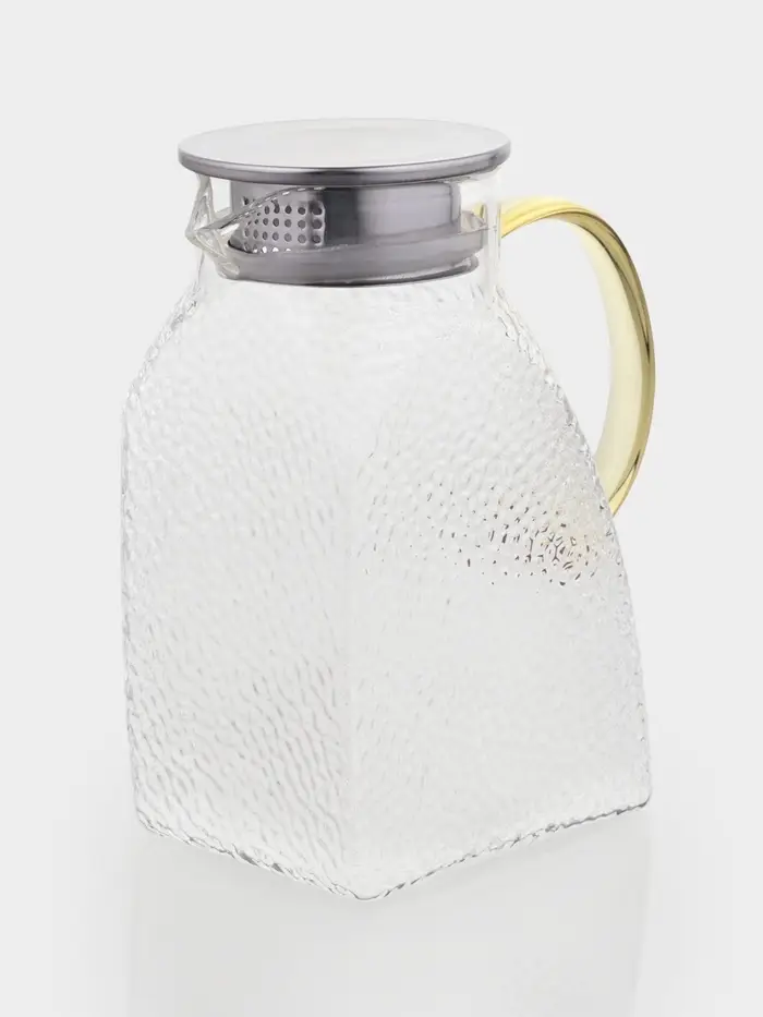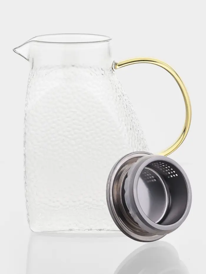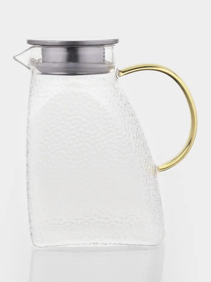 - Изящный дизайн: прозрачный кувшин с удобной ручкой и элегантной крышкой.