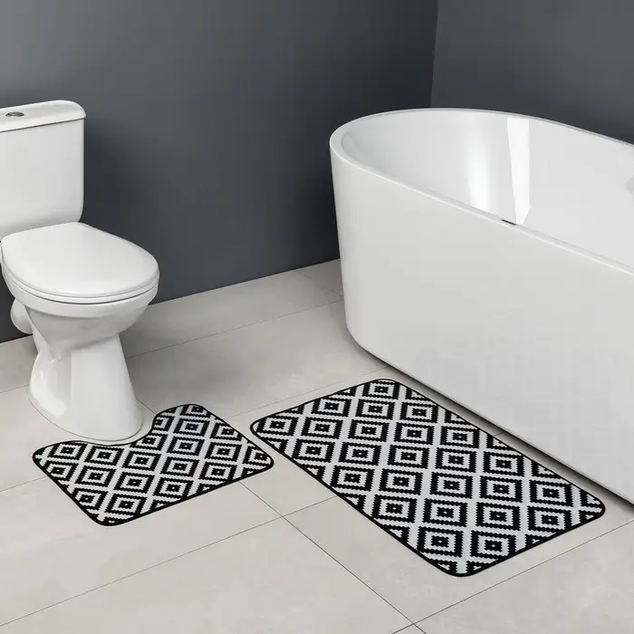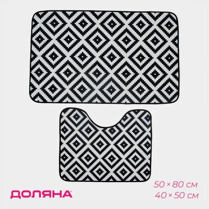 Коврики для ванной и туалета Доляна «Грета», 2 шт.: 50×80, 40×50 см, чёрно-белые
