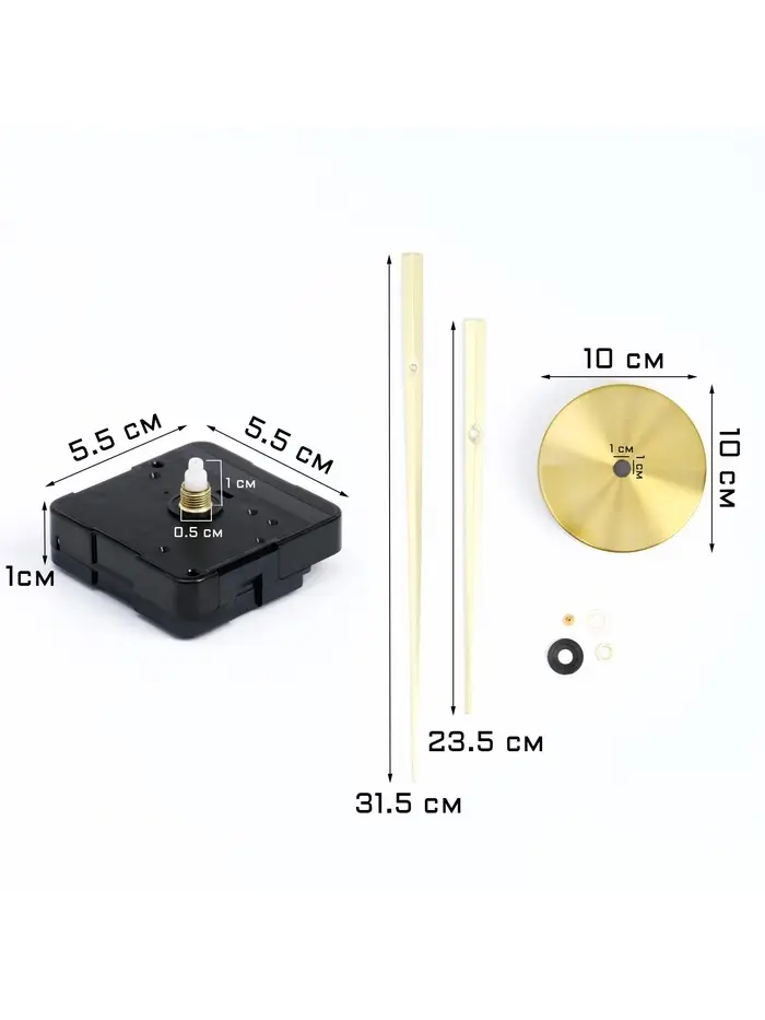 - Оптимальные размеры стрелок: часовая — 165 мм, минутная — 245 мм, что подходит для большинства настенных и настольных часов.