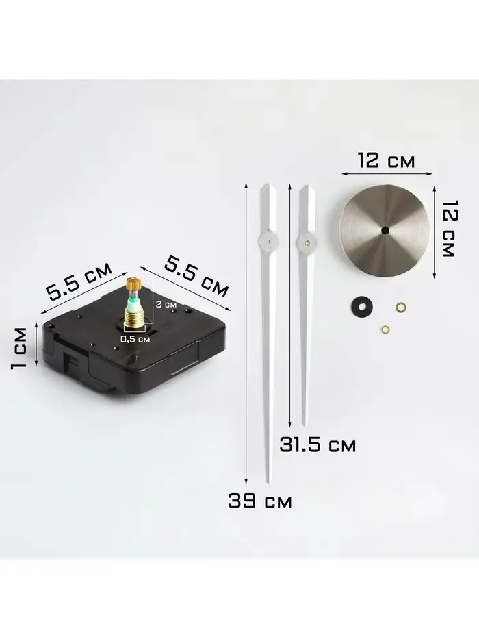 Часовой механизм со стрелками «Соломон-8», плавный ход, шток 12 мм, стрелки 60/95/98 мм