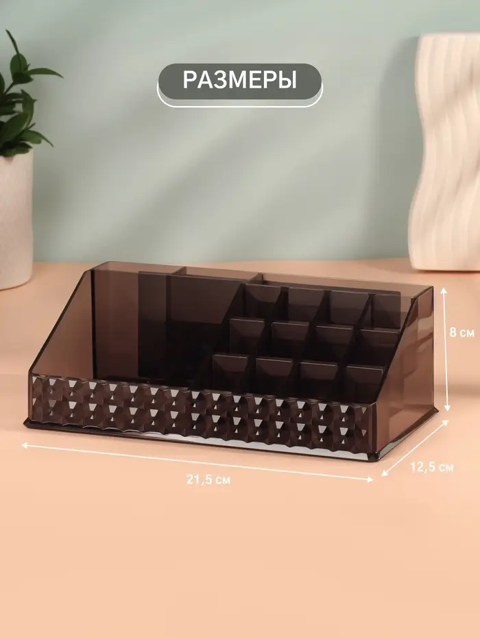- Универсальность: подойдёт для хранения косметики, канцелярии, ювелирных украшений и других мелочей.