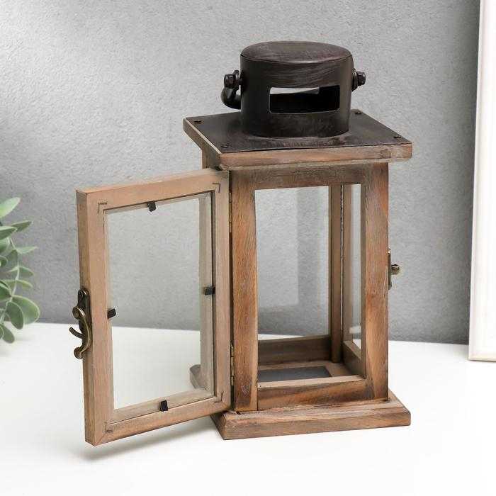 Подсвечник дерево на 1 свечу "Фонарь" коричневый 23х11,5х11,5 см