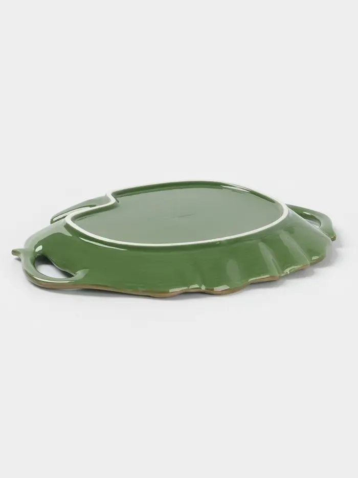 Блюдо сервировочное с ручками Доляна «Лист», 29×3.3 см, зелёное