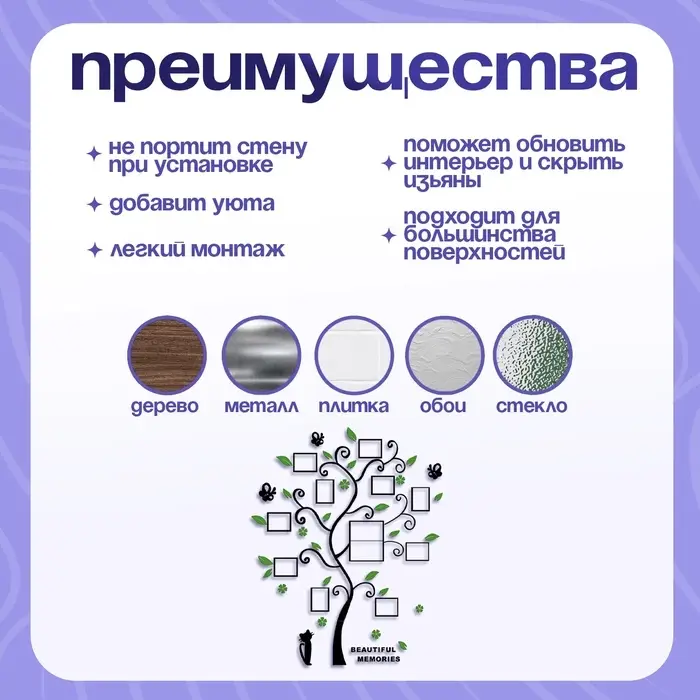 Наклейка интерьерная с фоторамками TAKE IT EASY «Воспоминания», декор на стену, панно 130×106 см