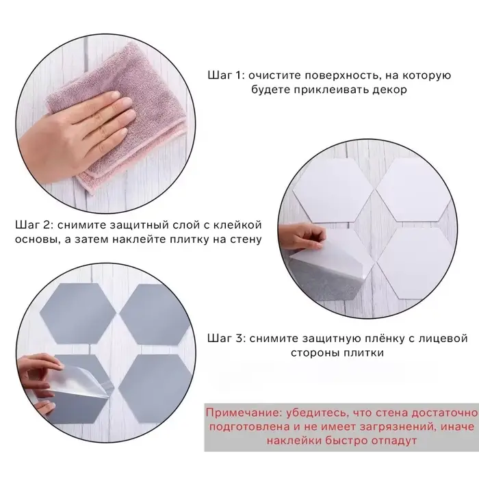 Изделие легко крепится на любой чистой, сухой, гладкой поверхности. Например, на окрашенной или оклеенной обоями стене, стекле, керамической плитке, металле, пластике. Наклейки легко снимаются и не оставляют следов, поэтому их удобно часто менять или использовать в съёмной квартире.