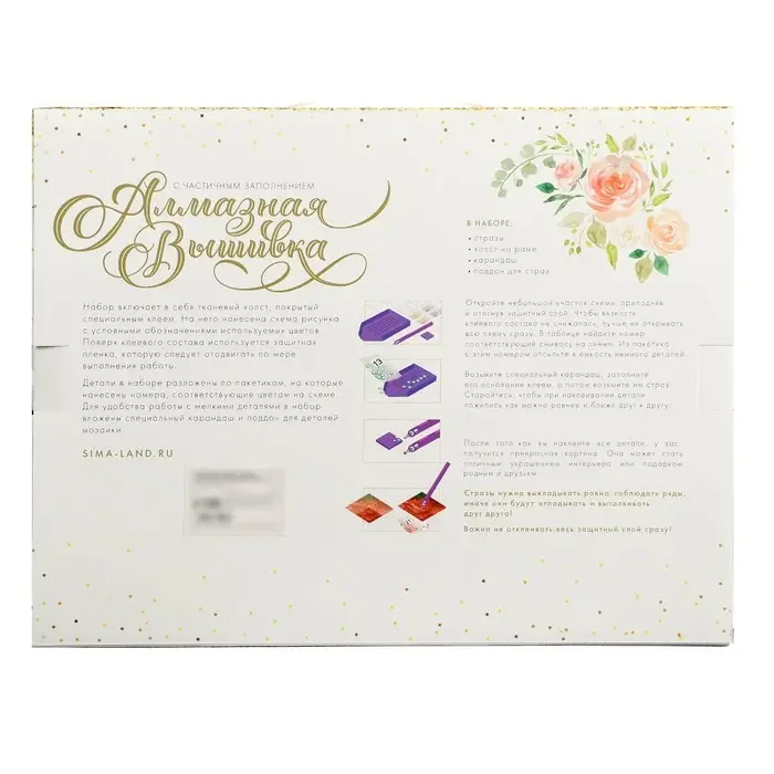 Часть картины предстоит заполнить стразами, другая часть напечатана на холсте-основе — такое изделие легче и быстрее создать. Поэтому набор подойдёт для тех, кто впервые пробует свои силы в этой технике или любит быстро добиваться результата.