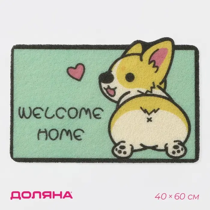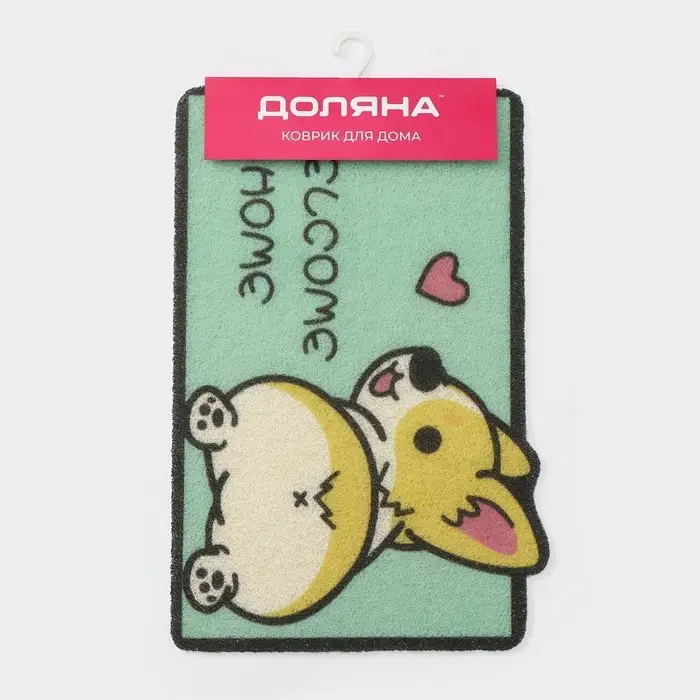 Коврик придверный Доляна «Корги», грязезащитный, 40×60 см, зелёный