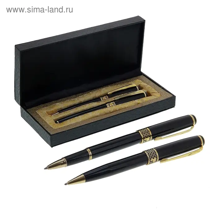 Набор подарочных ручек Calligrata «Гравюра», 2 штуки (капиллярная и шариковая), в футляре кожзам, корпус чёрный